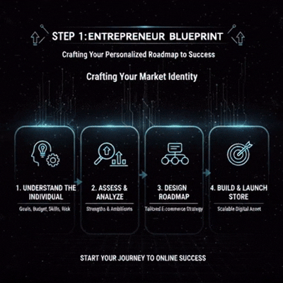 We start by understanding the individual’s goals, budget, skills, and risk appetite. Based on this, we design a personalized e-commerce roadmap, not a one-size-fits-all store.