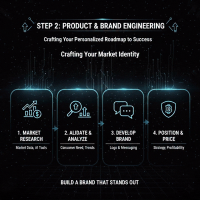 Using market research, AI tools, and demand validation, we identify winning products and craft a strong brand identity—logo, messaging, positioning, and pricing that stands out.