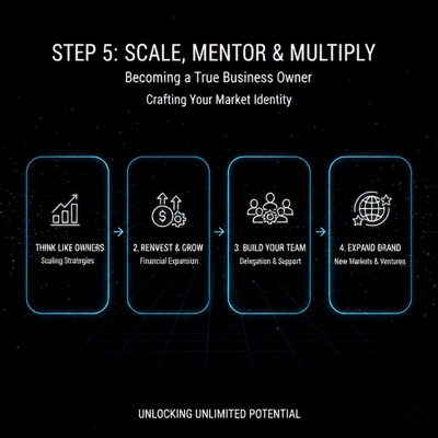 We mentor our clients to think like owners, not operators—teaching scaling strategies, reinvestment, team building, and brand expansion.